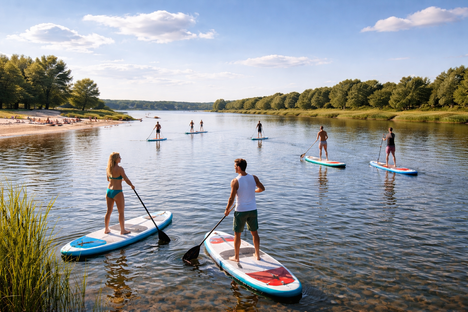 Suppen, ook wel Stand Up Paddling (SUP) genoemd, is een watersport waarbij je staand op een grote, stabiele plank over het water peddelt. Met een lange peddel beweeg je jezelf rustig vooruit terwijl je continu je balans bewaart.